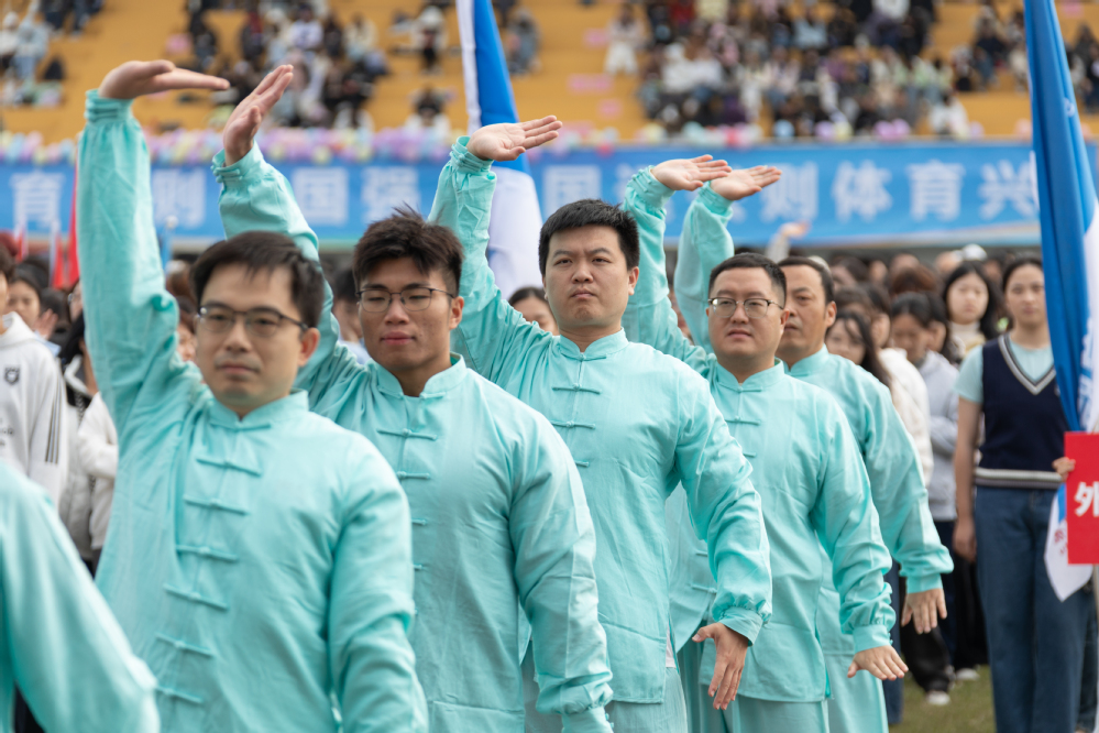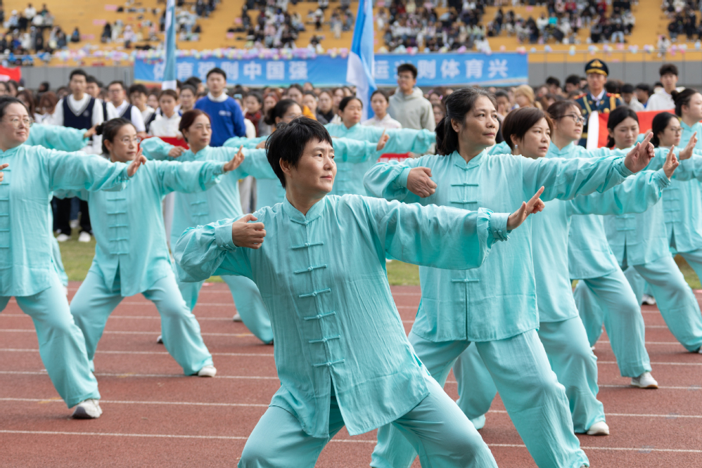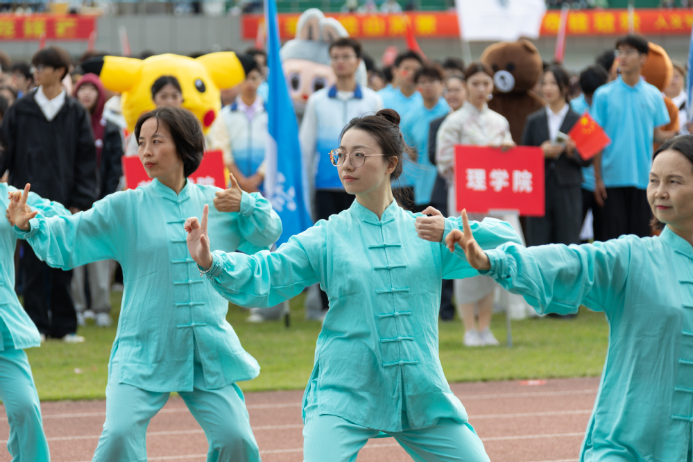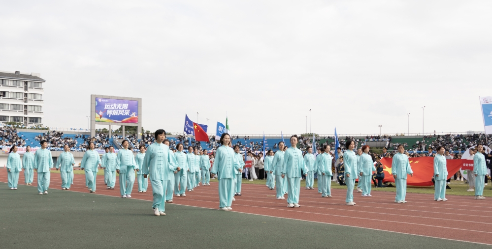 金秋送爽,丹桂飘香。10 月22日上午,东校区田径场彩旗飘扬、掌声雷动,我校第27届运动会开幕式隆重举行。在入场环节中,由17个分工会40余名教职工代表组成的八段锦方阵惊艳亮相,以统一的服装、整齐的动作,成为现场一道独具韵味的风景线,展现了我校教职工昂扬向上的精神风貌与对健康生活的积极追求。