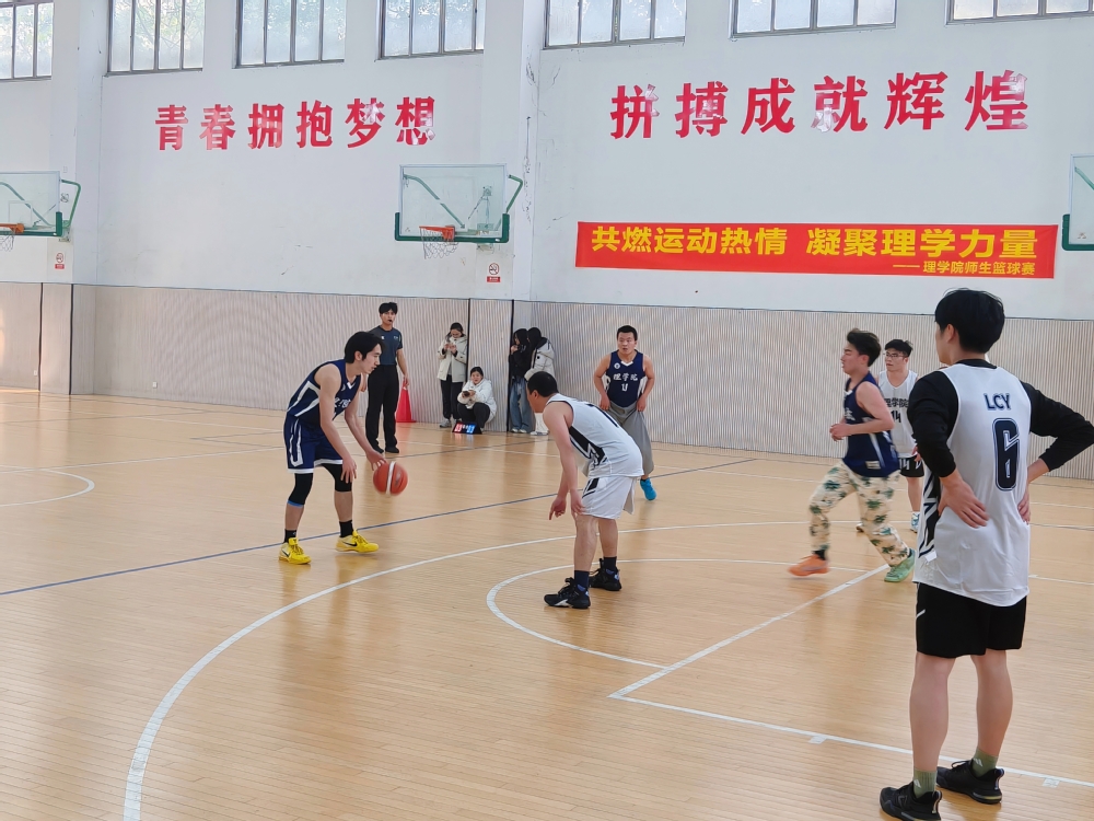 12月17日下午2点,湖州师范学院中校区篮球馆内气氛热烈、欢呼不断,由理学院分工会牵头组织的师生篮球友谊赛在此精彩上演。本次比赛旨在促进师生交流,增强学院凝聚力,同时通过创新的赛制设计,突出“全员参与、趣味互动”的体育精神。